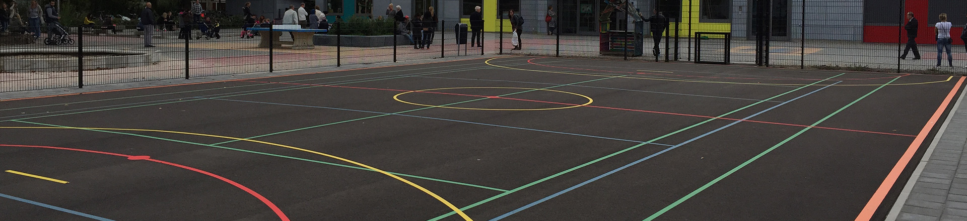 2k Acrylcoat sport belijningsverf is uitermate geschikt op Openbare (sport)vloeren van asfalt. Stroef, duurzaam en blijvend flexibel. Geen Craquelé vorming meer.