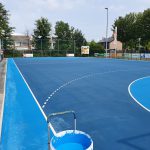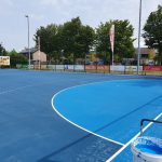 Dit handbalveld van asfalt is in 2011 voorzien van het Colorsint coatingsysteem, bestaande uit 4 lagen. In 2021 hebben we de bestaande laag schoongemaakt, opgeschuurd en voorzien van 2 lagen Colorsint in de kleuren licht- en donkerblauw. De twee lagen maken het veld weer als nieuw. De verwachting is dat het veld weer 10 jaar mee gaat.